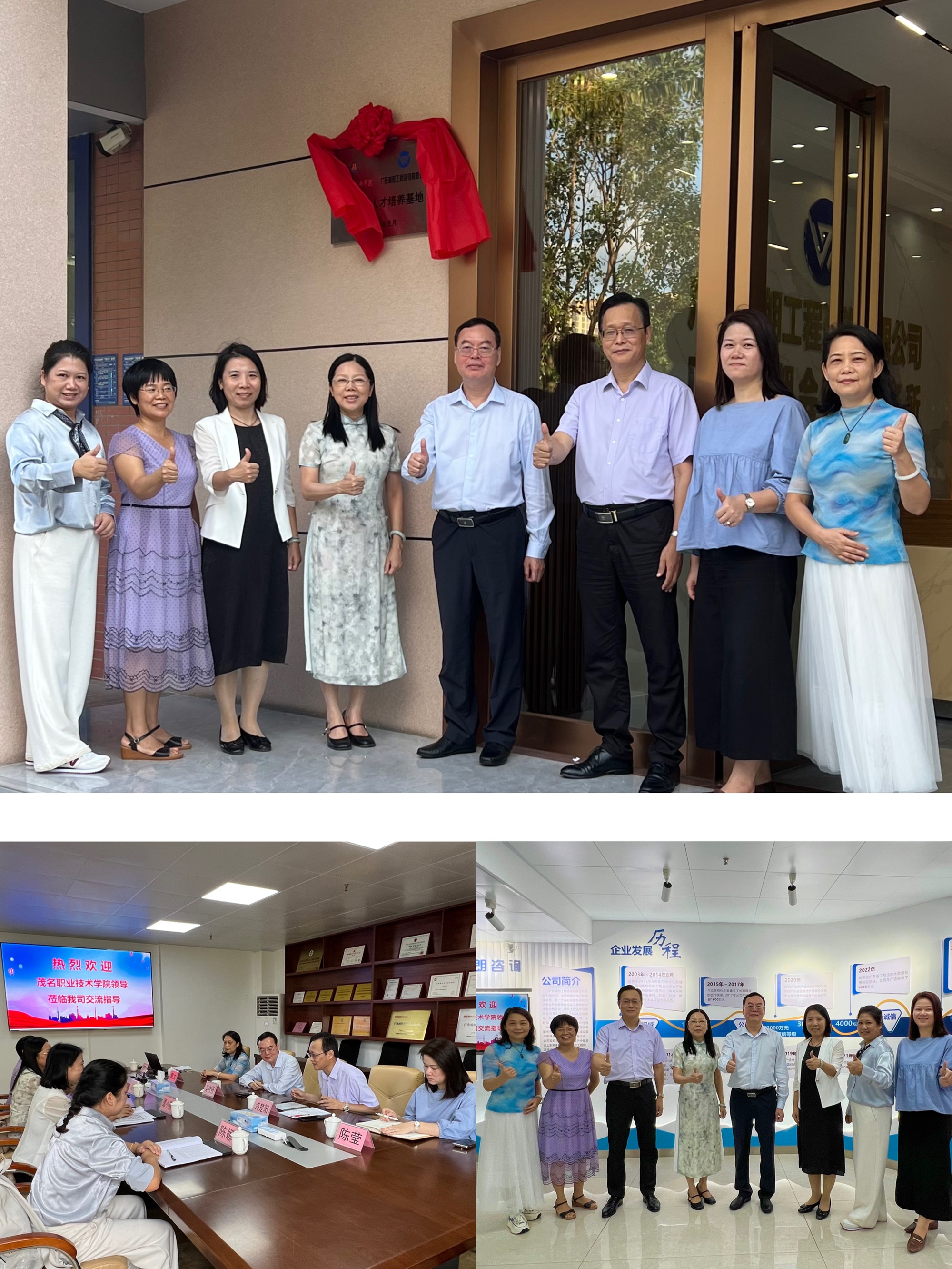 2025年10月20日下午,威朗公司与茂名职业技术学院举办的校企合作人才培养揭牌仪式在威朗公司隆重举行。茂名职业技术学院土木工程系冯川萍主任、谭小燕副主任、程肖琼老师、陈娜老师一行与威朗公司吴伟强总经理、许楚阳常务副总经理带队进行了揭牌仪式,并在威朗公司三楼大会议室进行了交流座谈。
